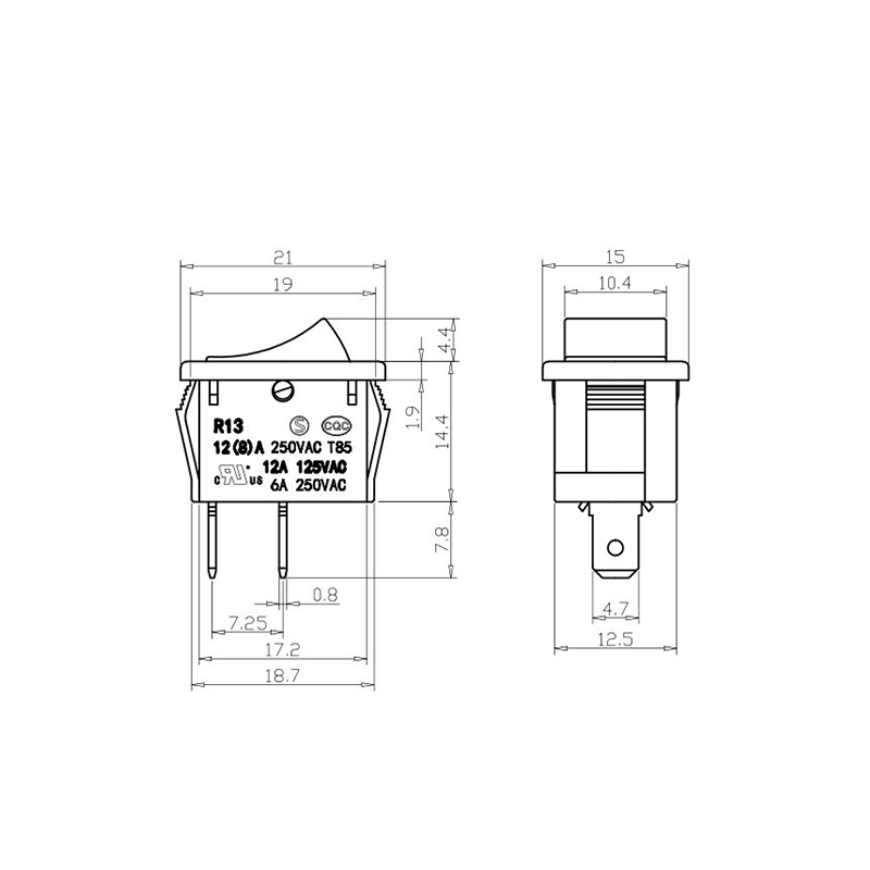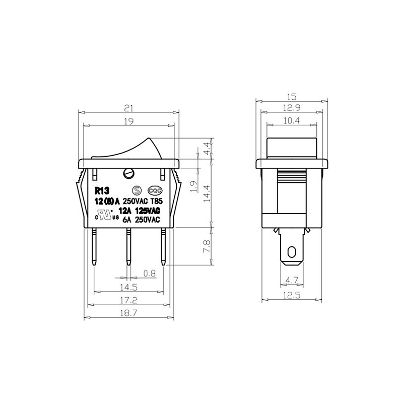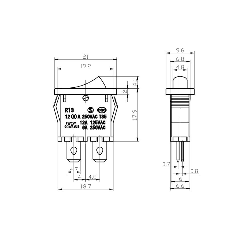 Dòng Công tắc Rocker Thiết bị Văn phòng R13-13 là công tắc rocker nhỏ gọn và linh hoạt được thiết kế dành riêng cho các thiết bị nhỏ và thiết bị văn phòng. Hệ số dạng nhỏ gọn của nó cho phép tích hợp bảng điều khiển dễ dàng trong các thiết bị chính xác. Vỏ được làm từ nhựa chống cháy có độ bền cao, đảm bảo độ bền trong điều kiện sử dụng thường xuyên và nhiệt độ cao. Bộ truyền động rocker được thiết kế công thái học, cho phép chuyển đổi trơn tru với nỗ lực tối thiểu.