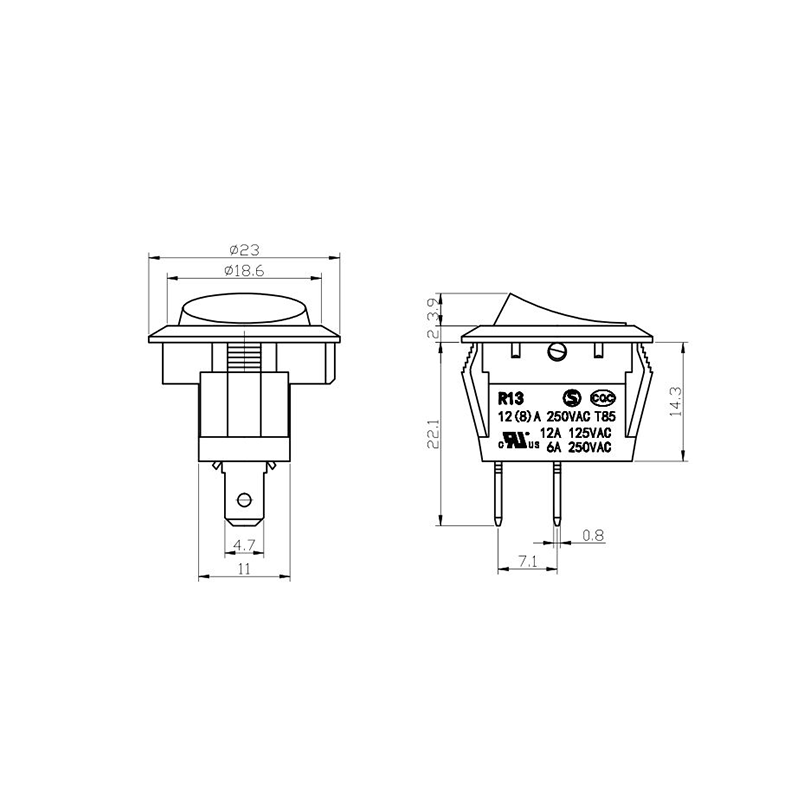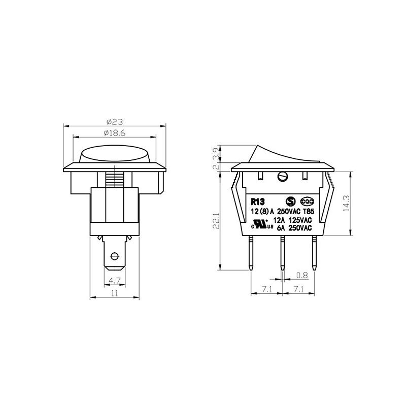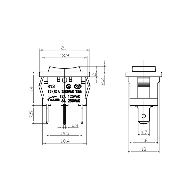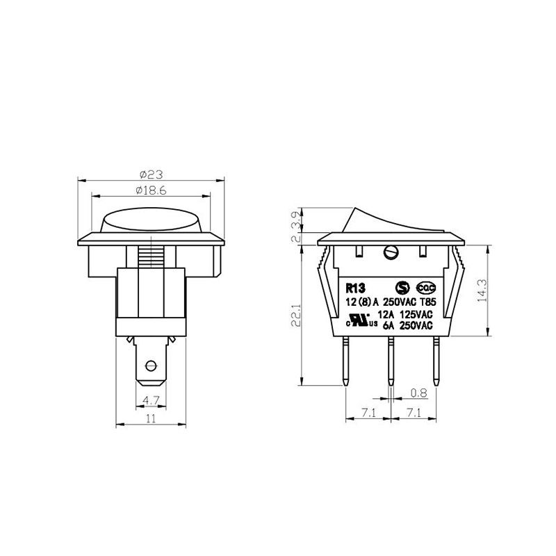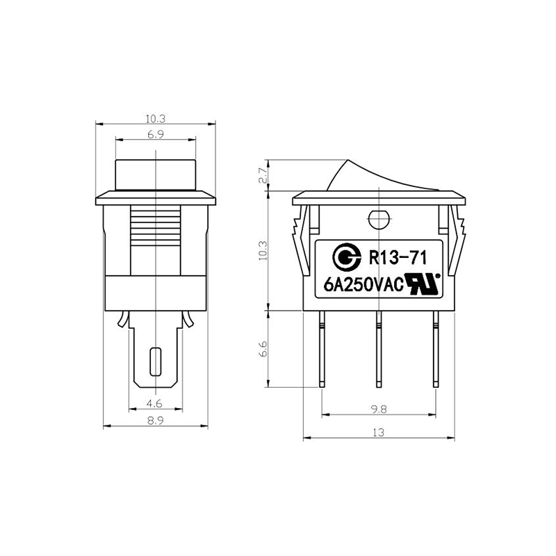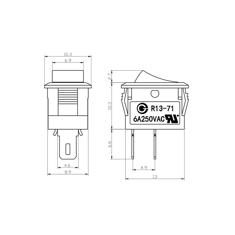 Về chức năng, dòng R13-13 cung cấp cả bố trí đầu cuối 2 chân và 3 chân, hỗ trợ cấu hình mạch SPST (Ném một cực) và SPDT (Ném một cực đôi) để đáp ứng các yêu cầu thiết kế điện khác nhau. Dấu "0/1" rõ ràng trên bộ truyền động giúp dễ dàng vận hành, trong khi các tùy chọn màu đen và trắng mang lại sự nhất quán về mặt hình ảnh với thiết kế sản phẩm cuối cùng.